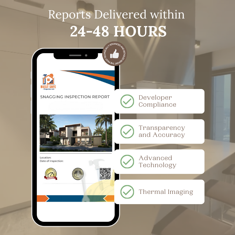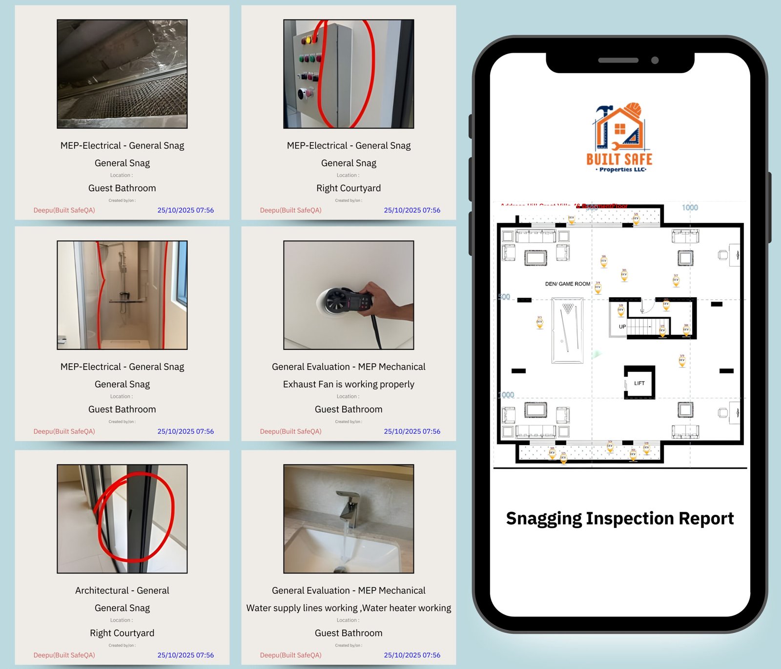 Welcome to Built Safe UAE's Go-To Experts for Snagging and High-Quality Property Inspections. We offer a full suite of snagging and inspection services, including new build handover assessments, end-of-DLP inspections, and evaluations for secondary market purchases designed to identify defects, verify compliance, and ensure your asset meets required quality and safety benchmarks