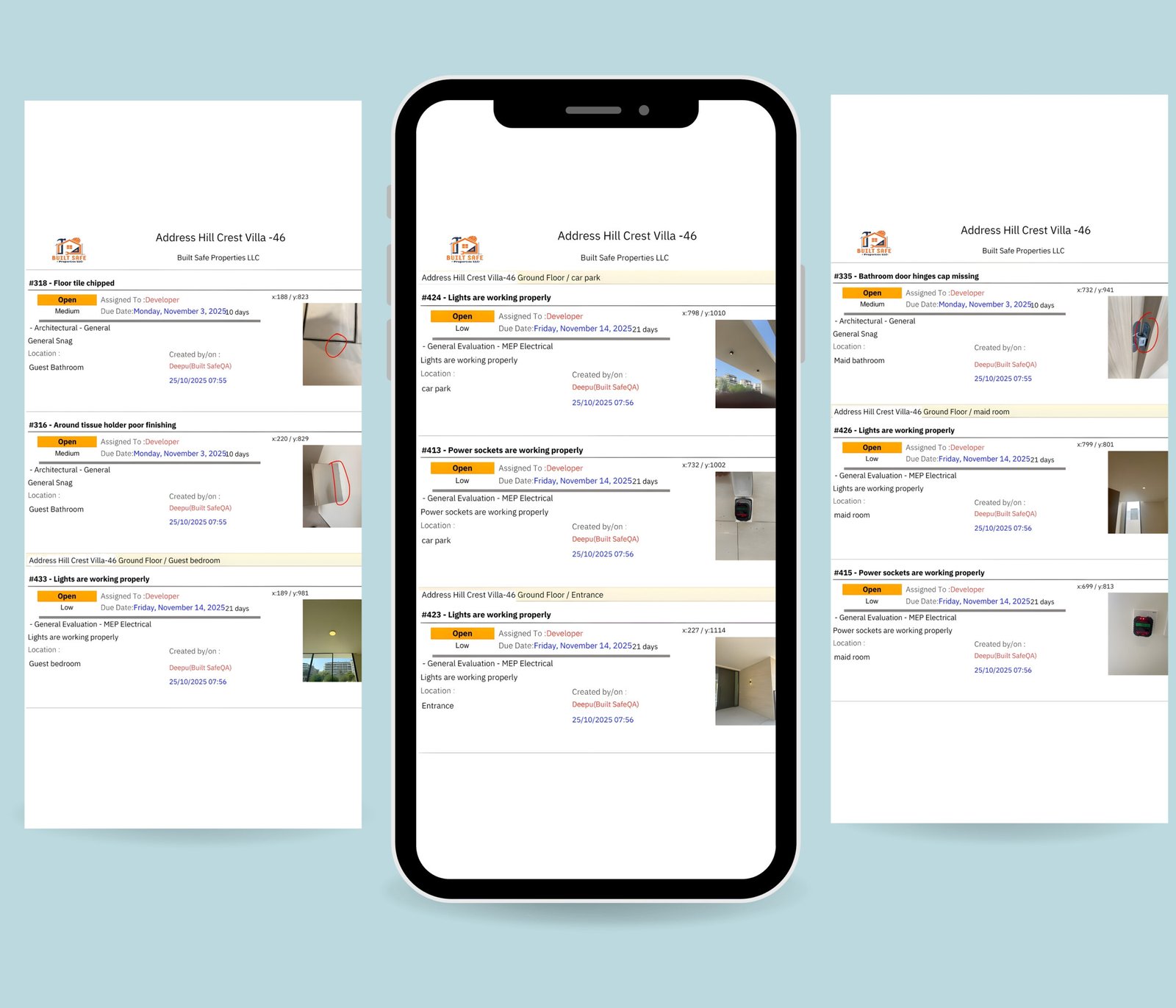 Our report is designed to support efficient communication between all parties involved and to ensure that all identified issues are resolved promptly, resulting in a high-quality finish that meets the agreed specifications.