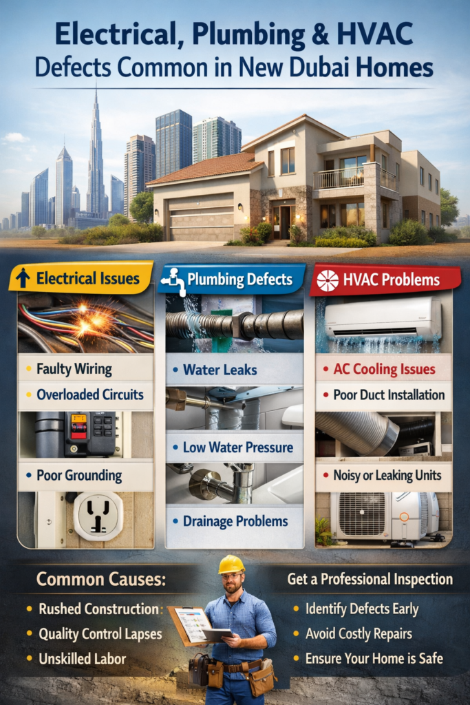 Buying a brand-new home in Dubai is exciting—modern layouts, premium finishes, and the promise of hassle-free living. However, many homeowners are surprised to discover that newly constructed apartments and villas can still have serious defects, especially in electrical, plumbing, and HVAC systems. These hidden issues, if ignored, can lead to safety risks, discomfort, and costly repairs.
